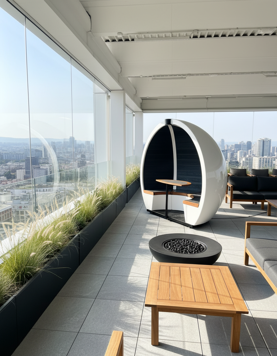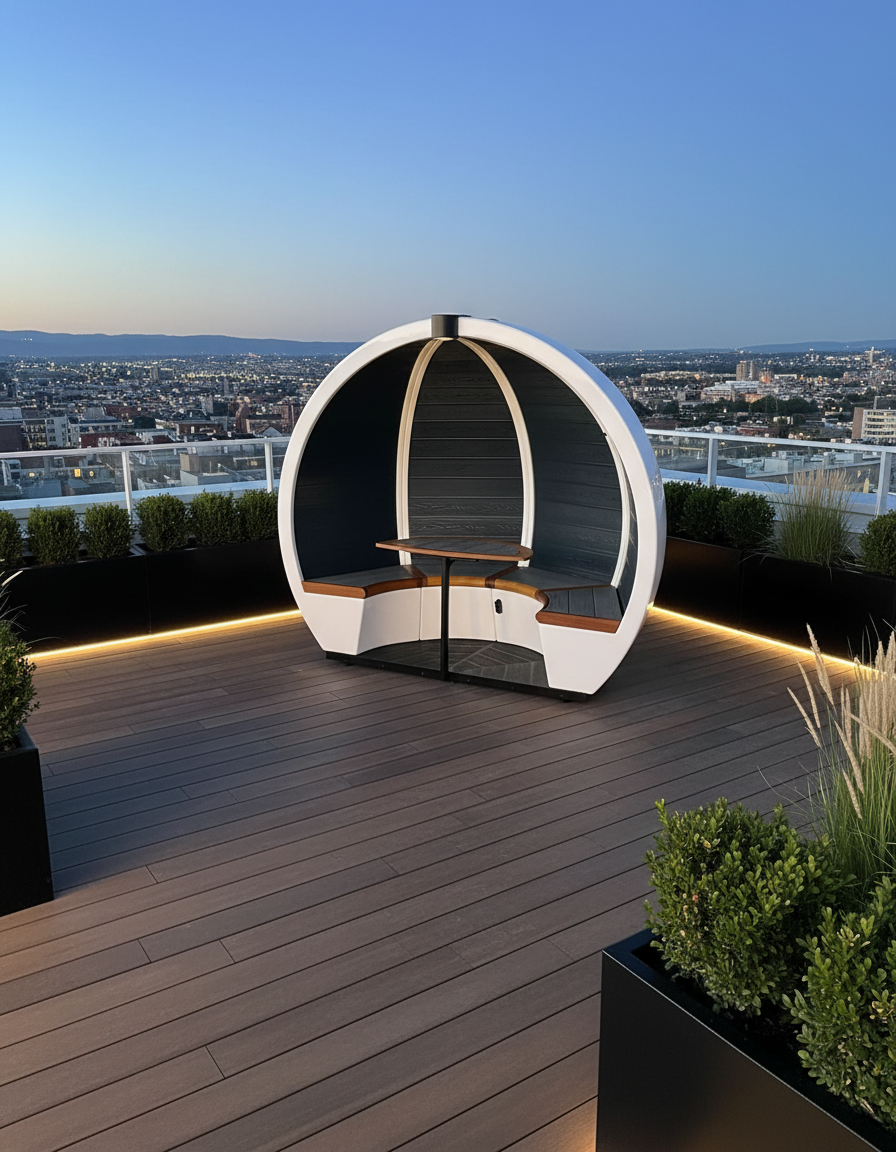 Sometimes we just need to get away from our desks. Escape Pods not only provide a WOW factor for any office environment, but also provide the perfect tranquillity to make that private call or recharge. Its segmented design allows for configurations from a semi-circular 4-person layout to an almost fully enclosed 7-person and delivers exceptional acoustics for an open pod.