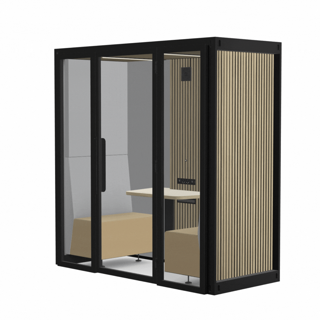 Our Meeting Booths provide a beautifully designed meeting space or private office with excellent acoustic properties. With its oak effect slatted panels offering a premium contemporary look and feel.