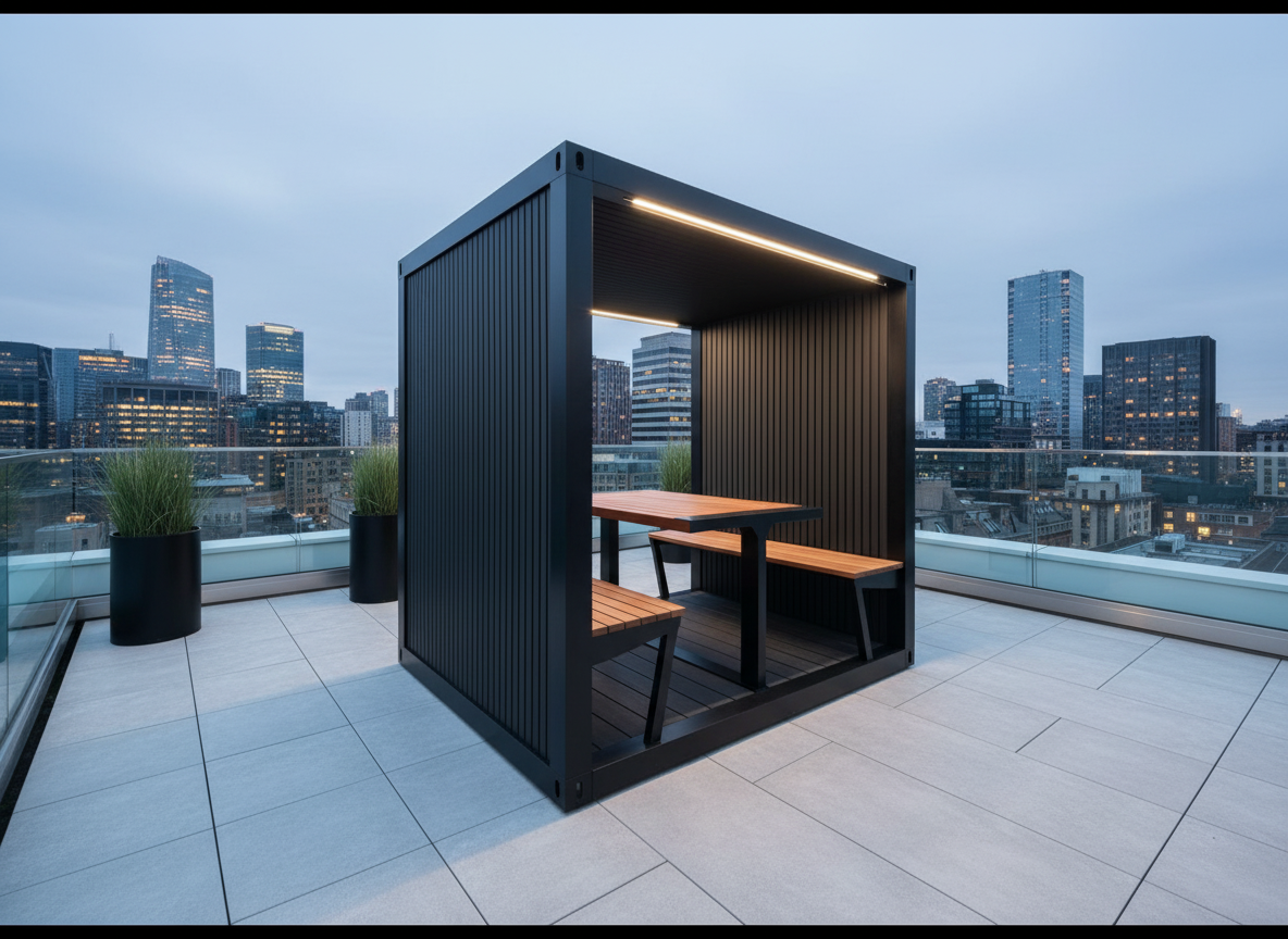 These sleek and modern pods will certainly stand out in any outdoor environment. Following on from the success from our indoor range, we have launched these specifically for the outdoor market. With its aluminium construction and high quality weatherproofed recycled materials, these pods are built to last.