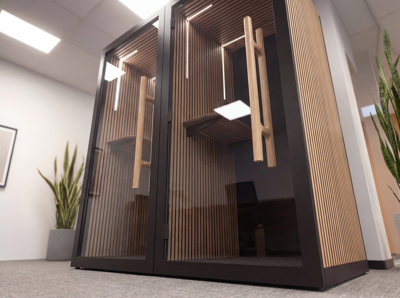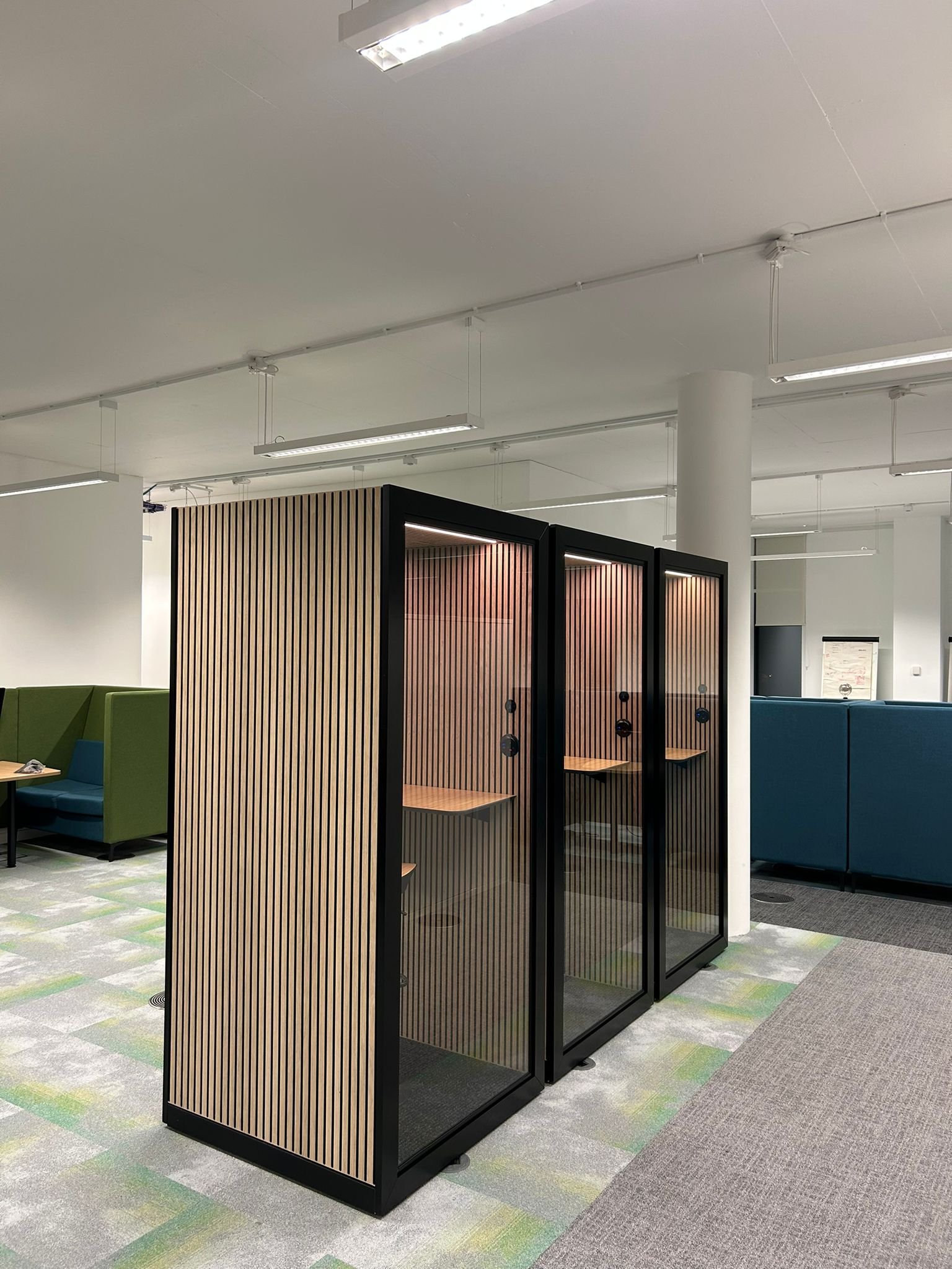 In today’s noisy open-plan working environments, our new range of highly acoustic phone and work booths provide the perfect quiet sanctuary to take those phone and video calls or get some quiet time to finish that urgent project. With high quality materials and external timber effect slats, these booths deliver a premium contemporary look and feel.