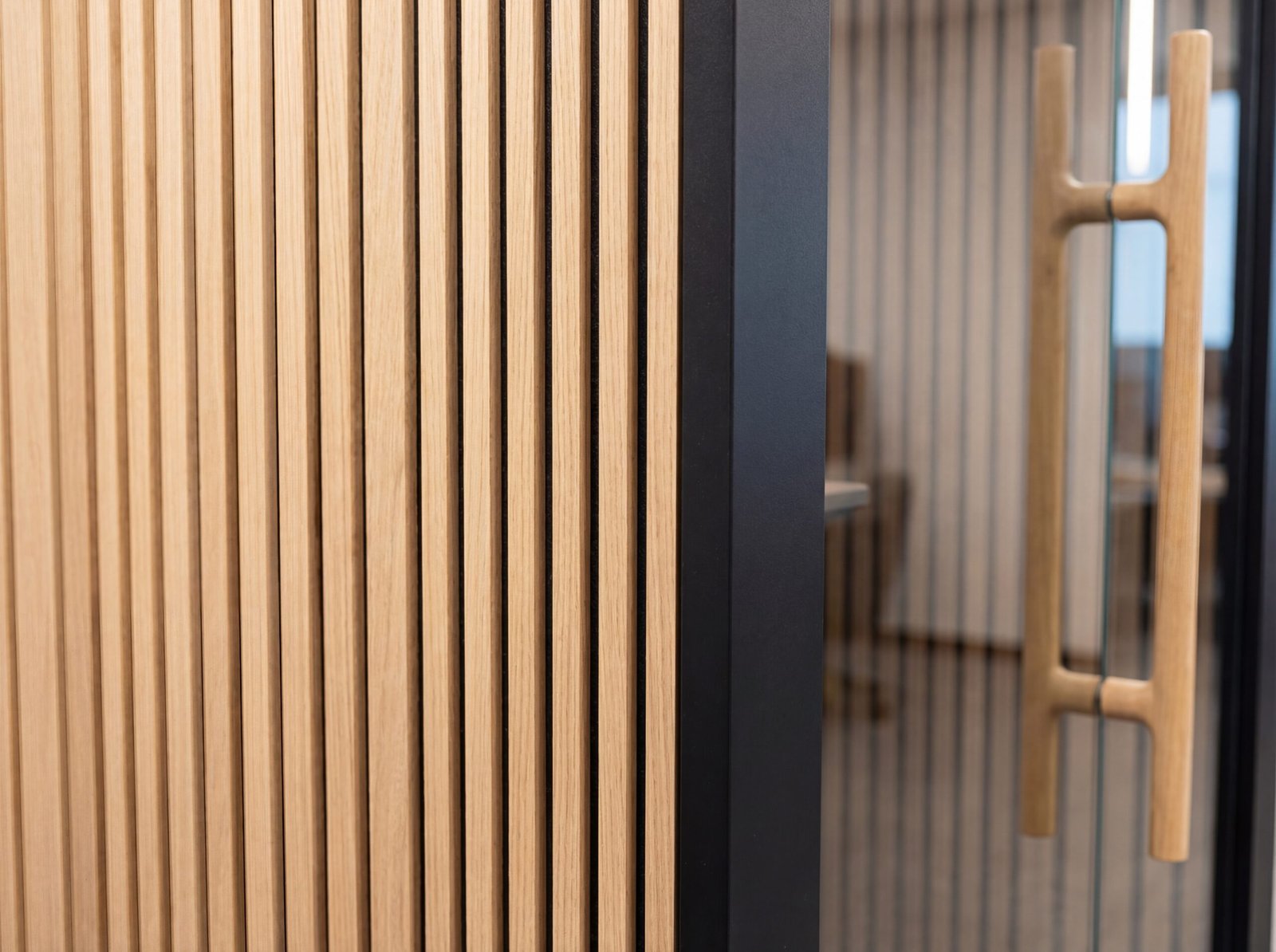 Light oak wooden slatted internal panels